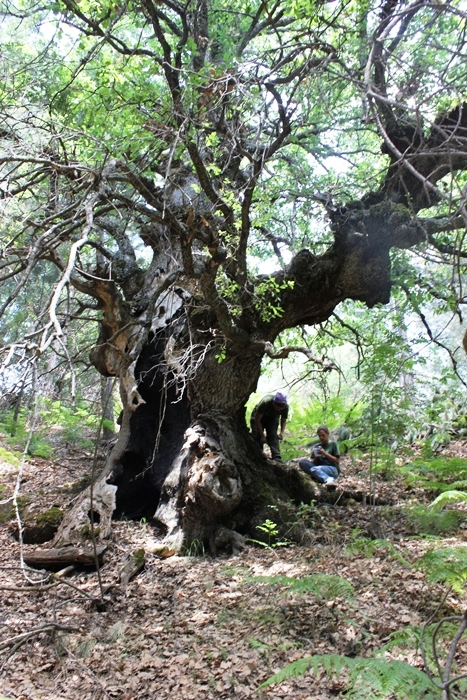 Note e Curiosità: Fori d’uscita di Cerambyx cerdo; farina di foratura; albero assediato dai pini;colpito da fulmine