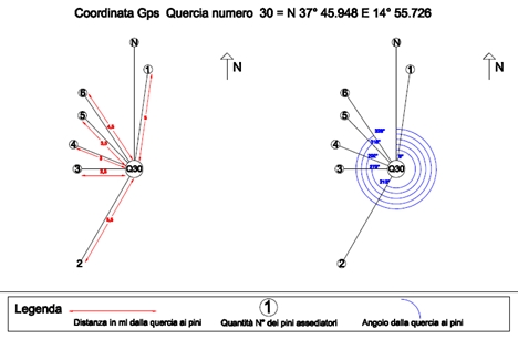 Segnalazione dei pini da tagliare attorno alle querce assediate